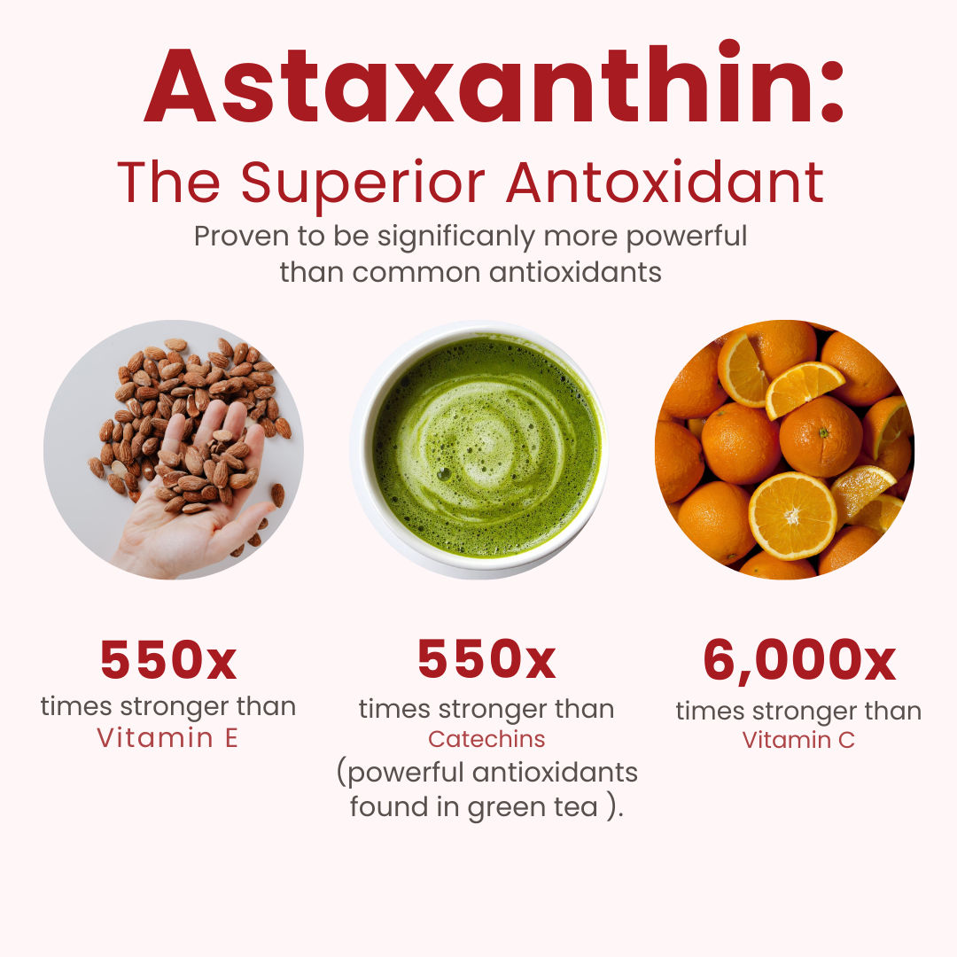 Powered by antioxidants and skin supporting ingredients like beta carotene and vitamin E, astaxanthin is designed to began improving from the inside out.